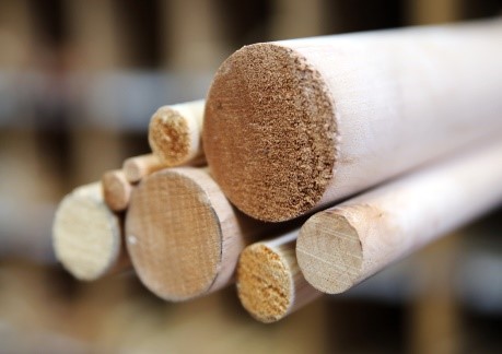 Los bastones redondos se consiguen de tablones de madera de primera calidad. Se fabrican en haya o pino, y en diversos diámetros.
