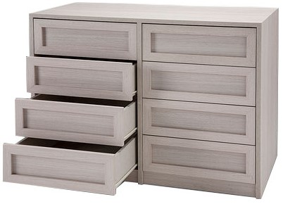 Los cajones pueden tener una altura de 10 cm, 16 cm, 20 cm ó 32 cm (2 frentes de 16).